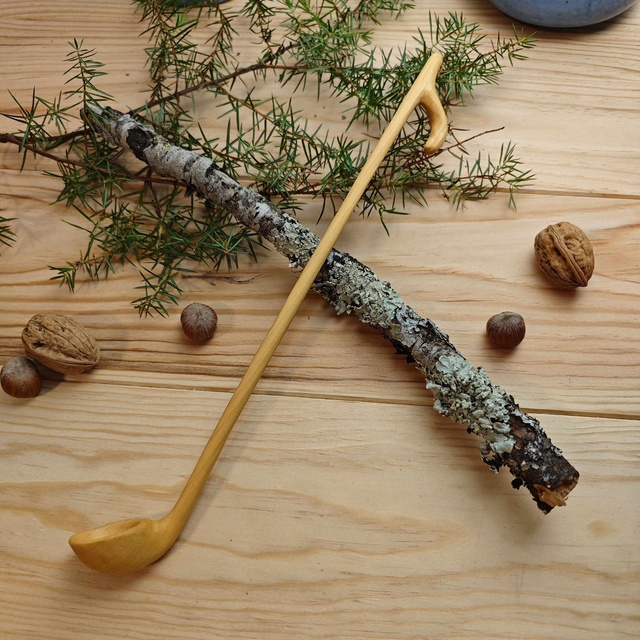 Bois torréfié : la cuillère est passé au four quelques heures pour lui donner une teinte plus riche.