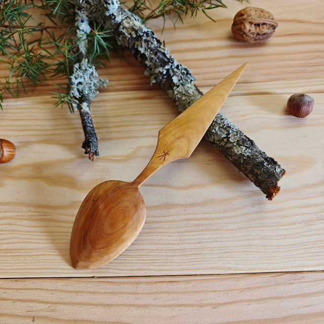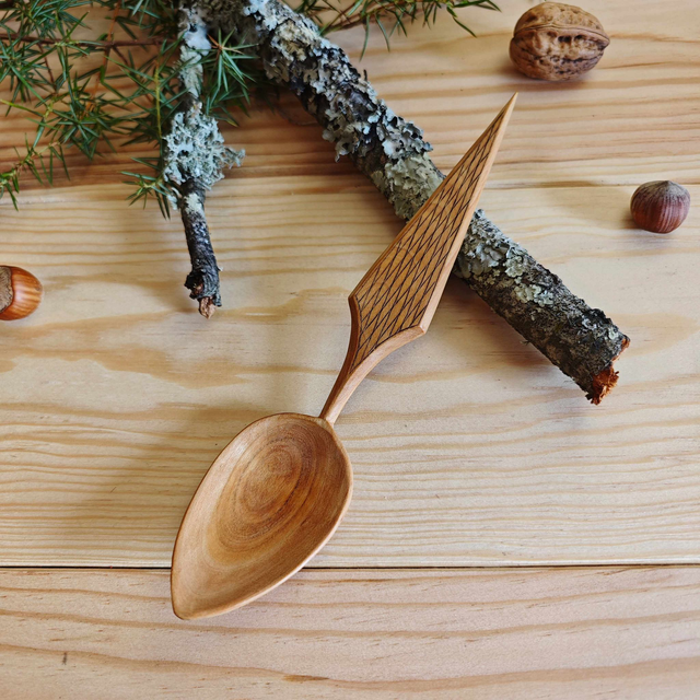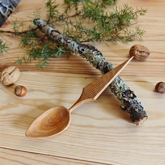 Cuillère en merisier avec kolrosing-C112