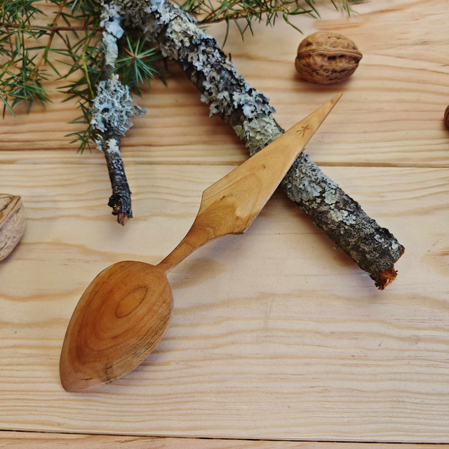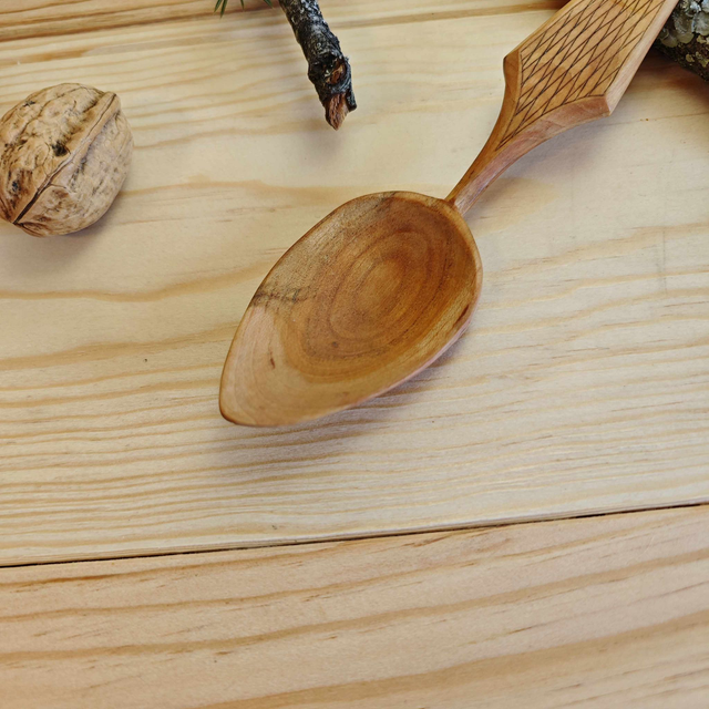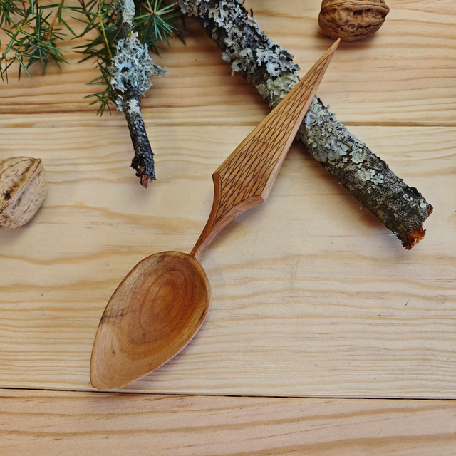 Le kolrosing est une technique de gravure qui consiste à pratiquer de fines incisions dans le bois pour former des motifs fins et régulier. Ensuite, on frotte une poudre sombre comme du café ou de la cannelle, dans les incisions, pour créer le dessin
