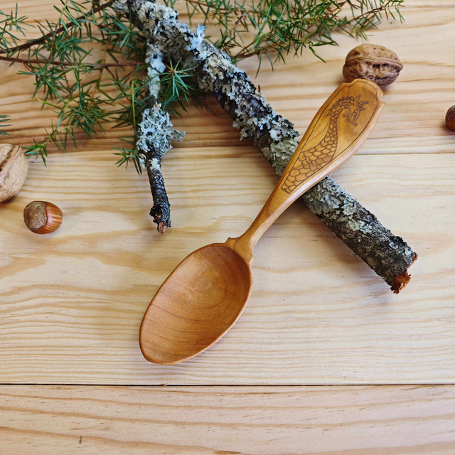 Cuillère en merisier avec kolrosing-C298